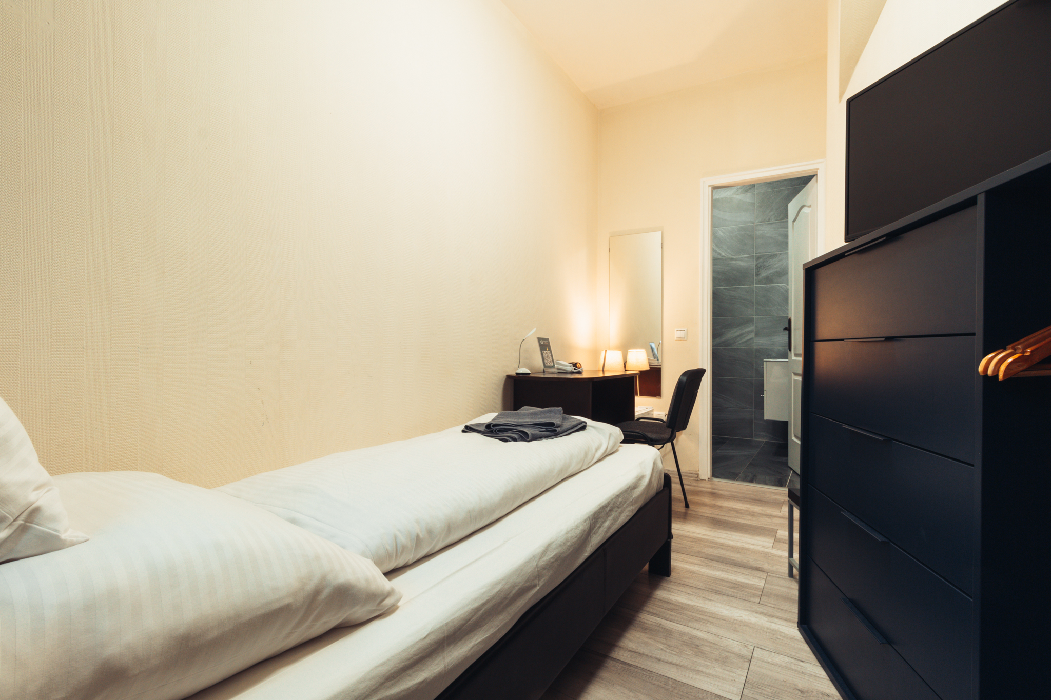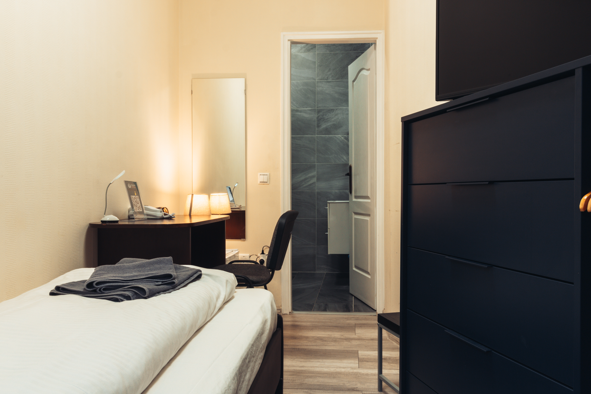 Egyágyas szoba kedvező áron, minden alapfelszereltséggel és saját fürdőszobával.
