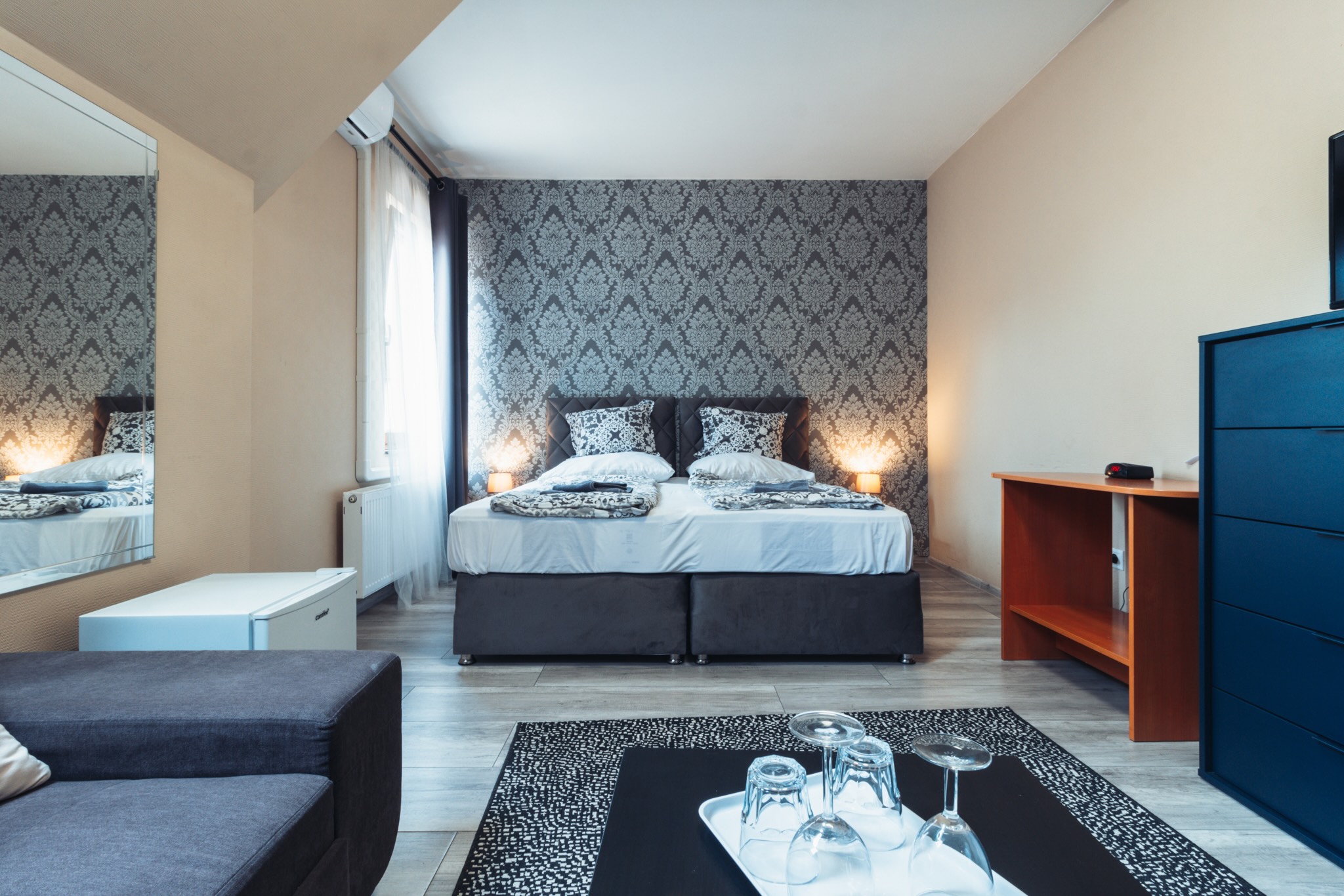 Modern, jól felszerelt szobáink várják vendégeinket. Minden szoba légkondicionált, ingyenes Wi-Fi-vel.