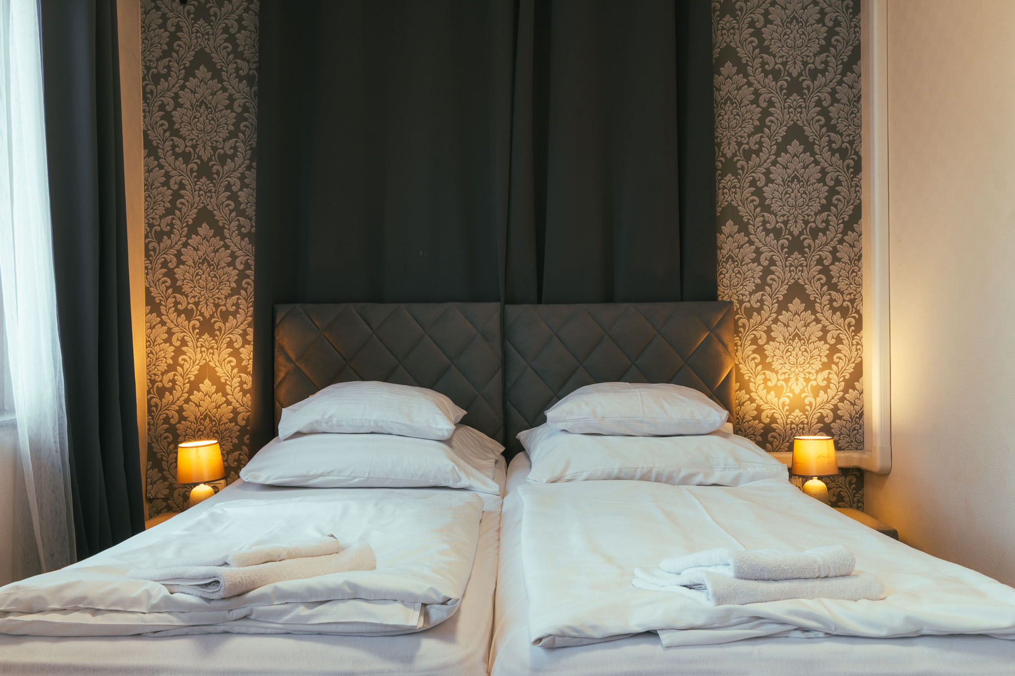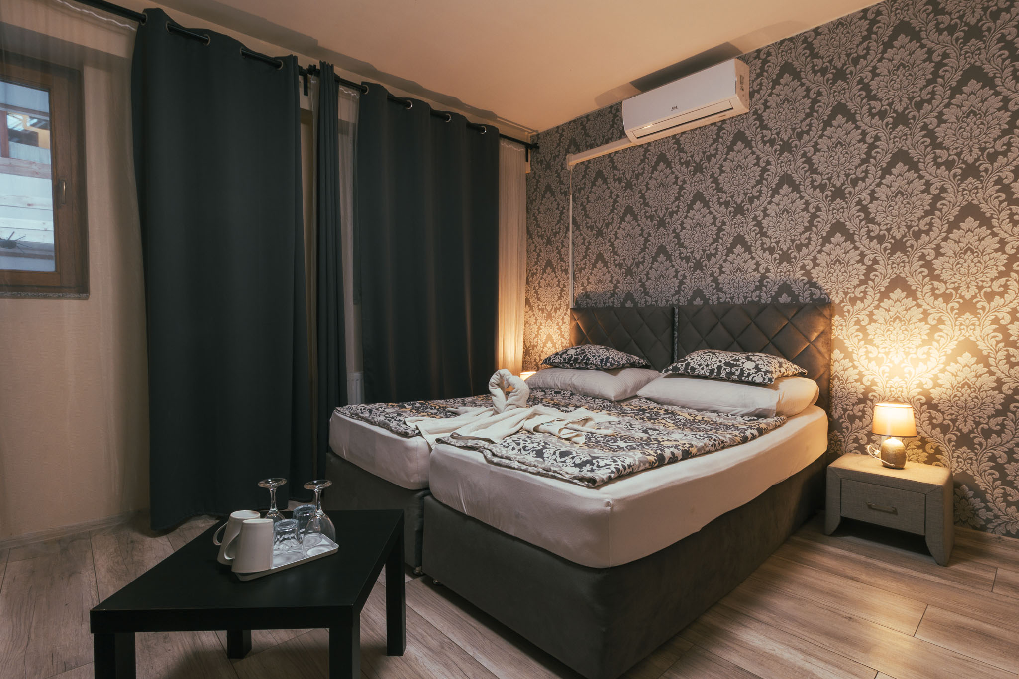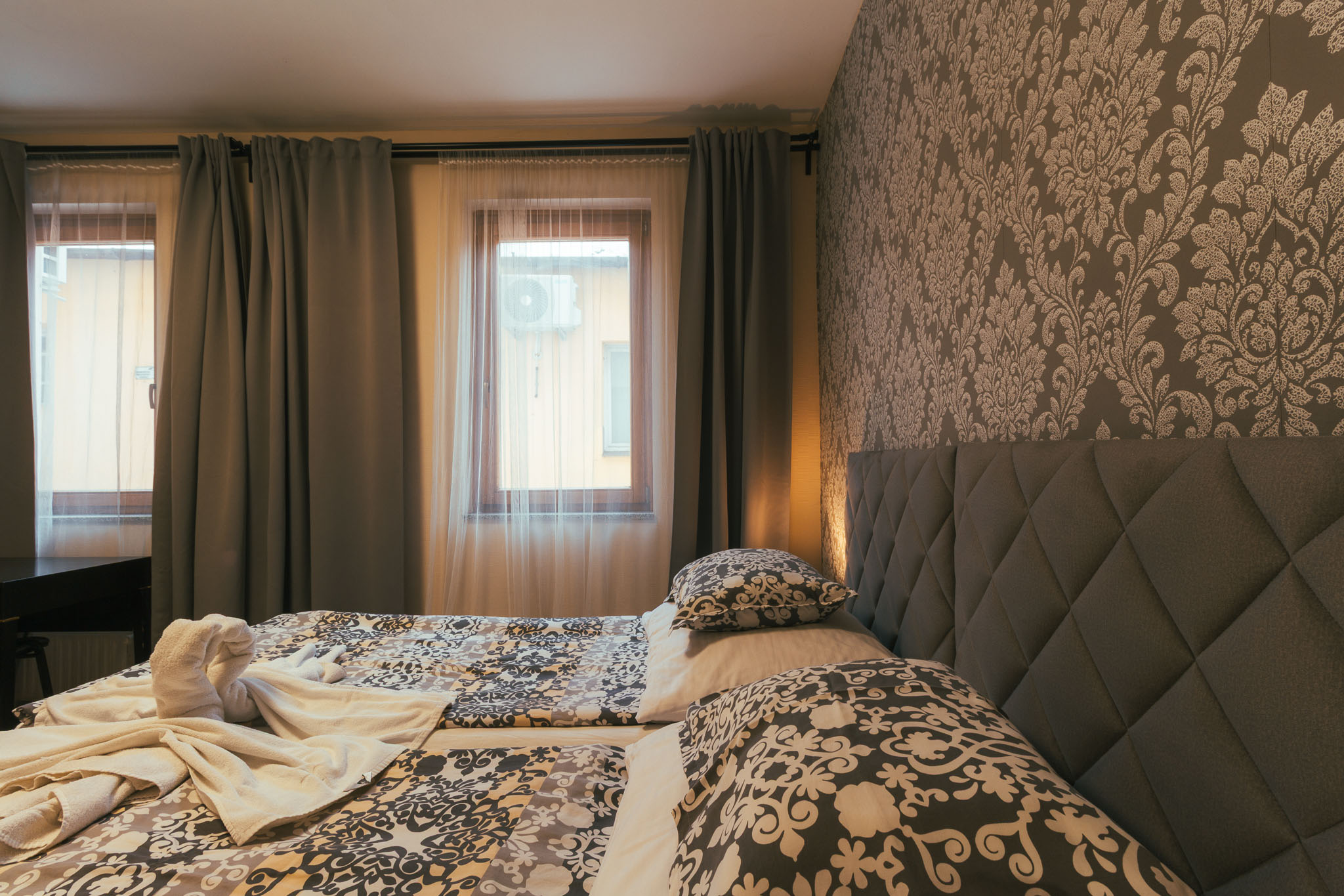 Kétágyas földszinti szoba összetolható különágyakkal, párok számára ideális.