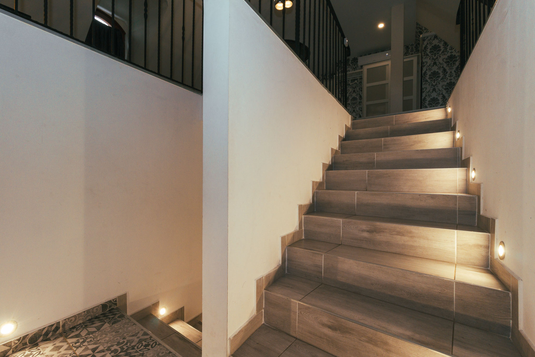 Négy különággyal és két légtérrel rendelkező szoba a földszinten.